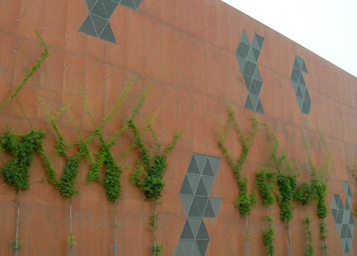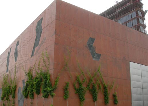 Autor del proyecto Jordi Cuatrecasas. Entorno exterior: Víctor Rahola Edificio de hormigón, sistema de pigmentación y protección exterior JENSEN SI-22 y Antigrafitti. Color acero corten
