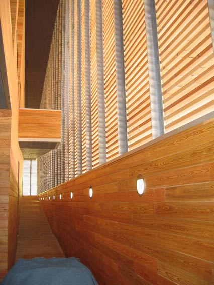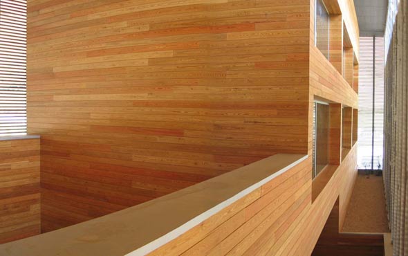 Suministro y tratamiento de tarima de alerce con aceite Jensen SI-71 para fachada del edificio.
