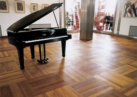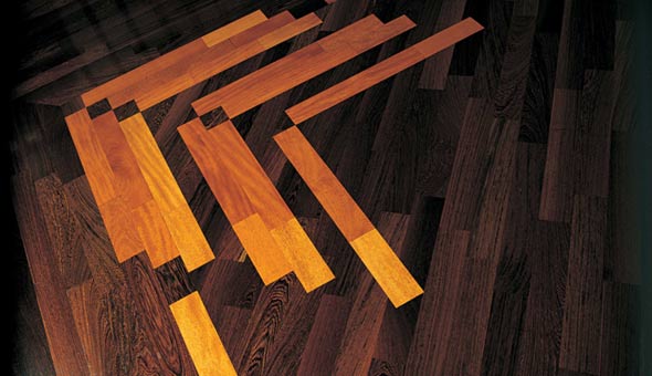 Colección de pavimentos en varias maderas y modos de instalación.